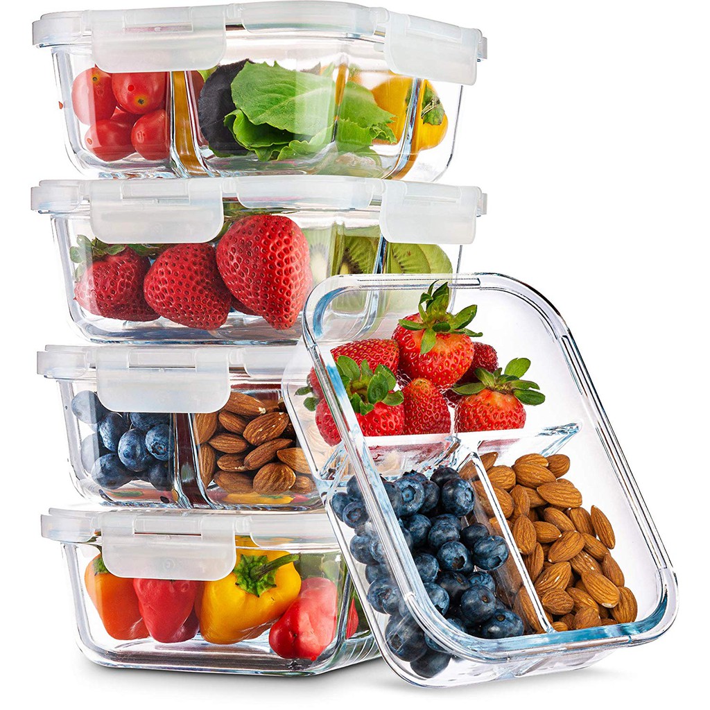 Glass Food Storage Containers-5 One Compartment Por. These glass food storage containers are perfect for making a meal with multiple components or saving multiple parts of a meal. Borosilicate Glass PP Silicone.