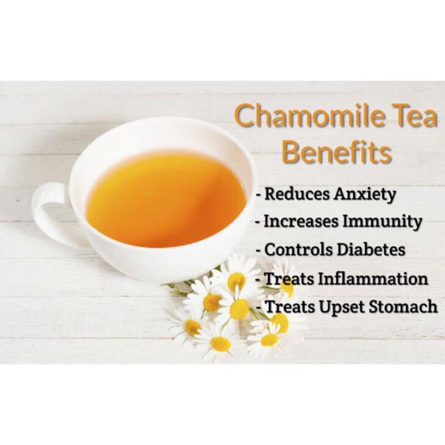 Chamomile is known for its calming anti-anxiety properties. For digestive relief consider drinking chamomile tea for diarrhea ulcers colic acid indigestion gastritis and irritable bowel syndrome. Chamomile tea is known for reducing anxiety and helping people fall sleep.