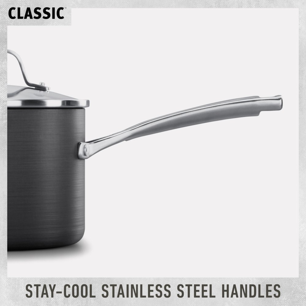 48 out of 5 stars with 43 reviews. Calphalon classic hard-anodized nonstick cookware is designed to save you time in the kitchen and deliver cooking versatility with convenient measuring marks straining covers and pour spouts allowing you to cook efficiently. 1943336 on this page.